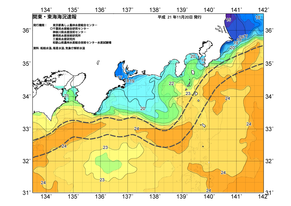 広域版海の天気図2009年11月21日(土曜日)