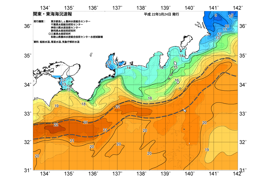 広域版海の天気図2011年3月22日(休日)