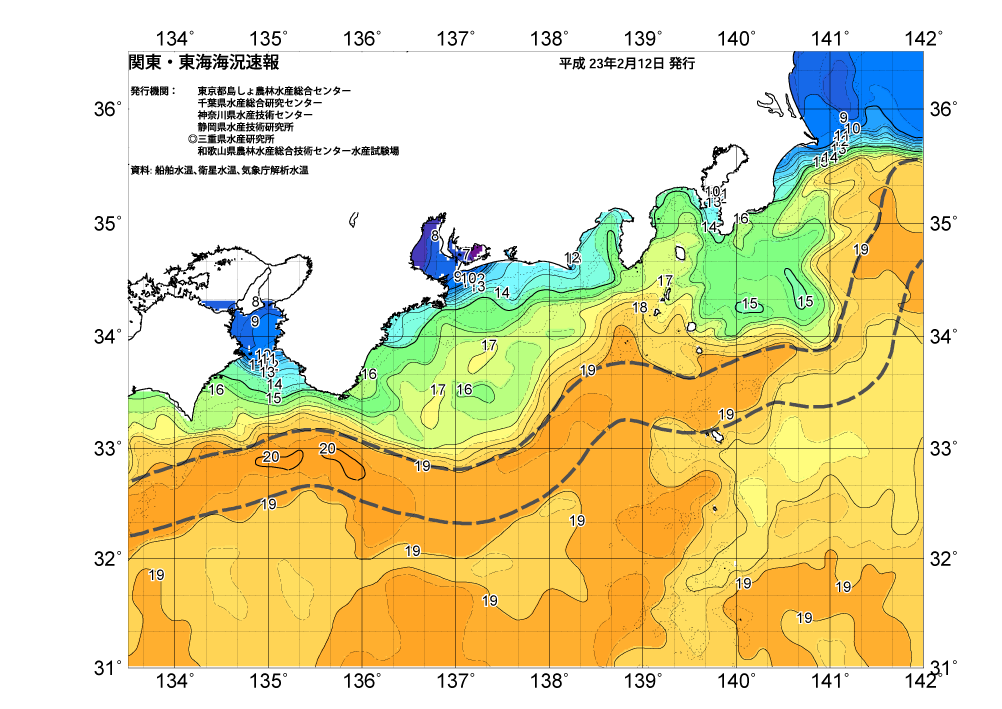 広域版海の天気図2011年2月12日(土曜日)