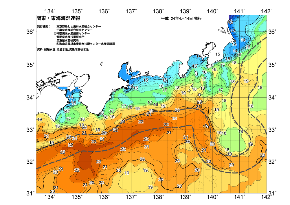 広域版海の天気図2012年4月14日(土曜日)