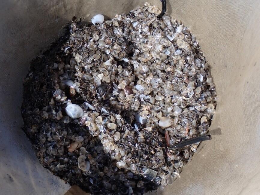 バカガイ(右上)・トリガイ(左)等のSt.3とは異なる貝類が目立つ。